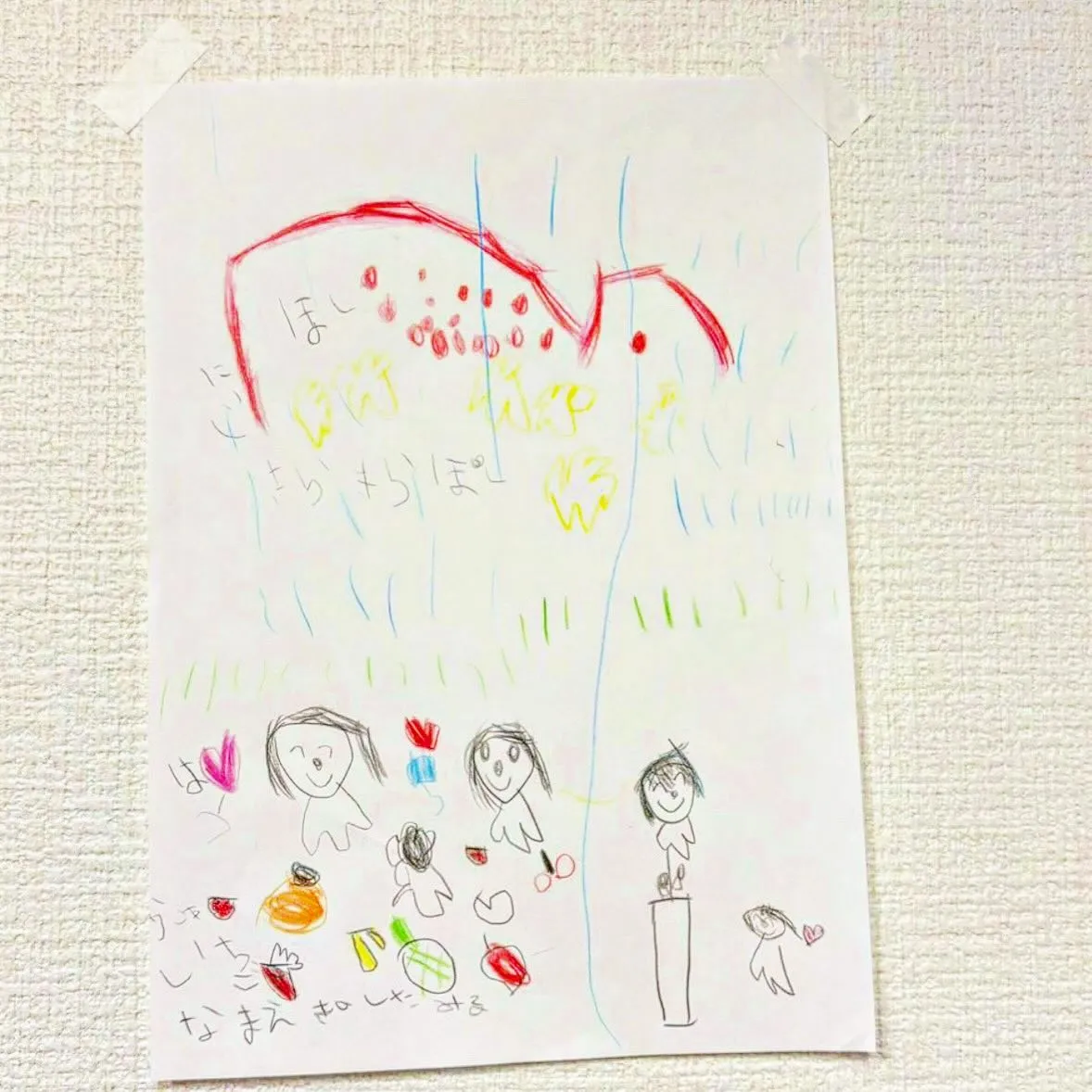 ちなみにこの絵は、いつもお父さん、お母さんと一緒に遊びに来てくれる女の子が描いてくれました🖍️♡