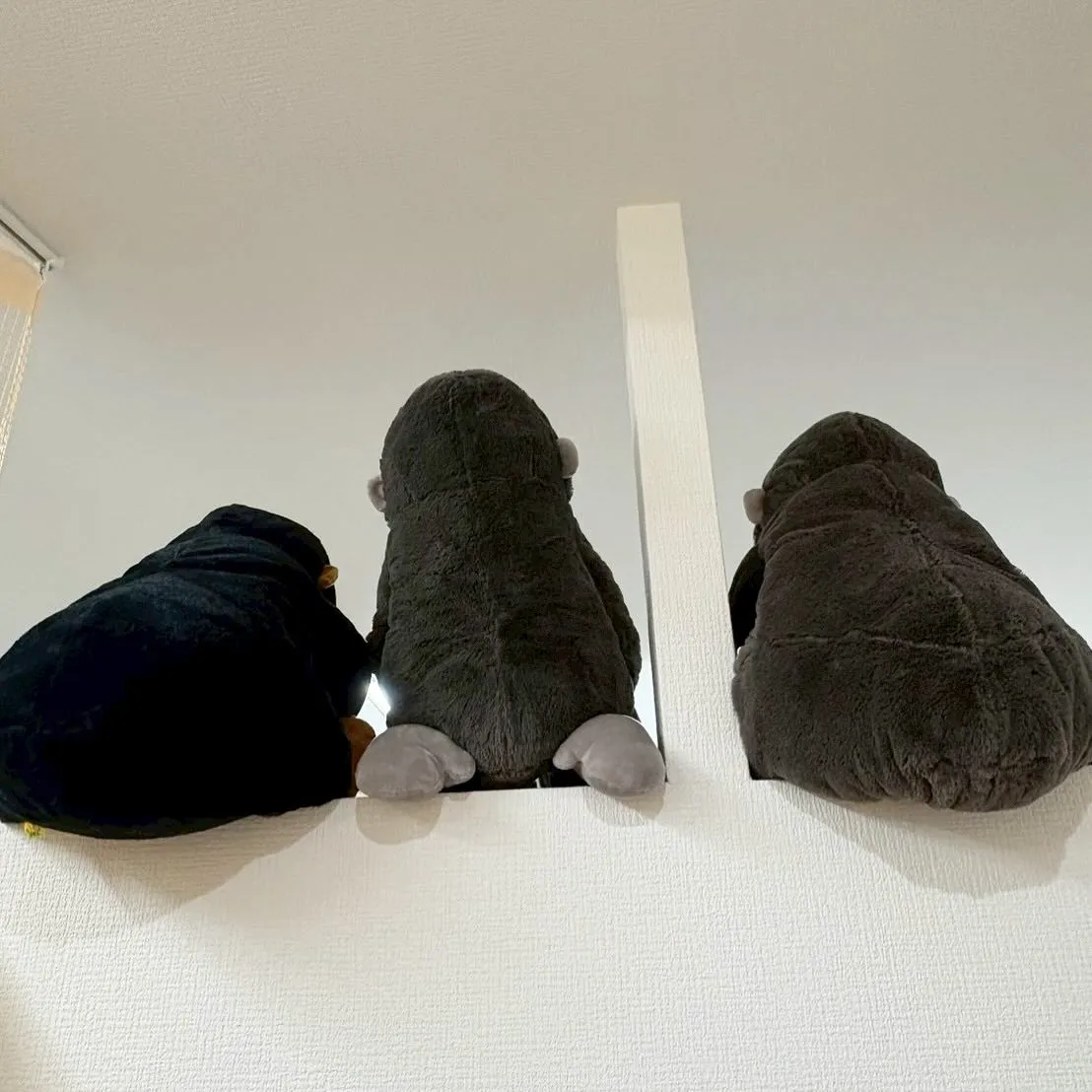 写真は整骨院に飾っているゴリラのぬいぐるたちの後ろ姿です🦍